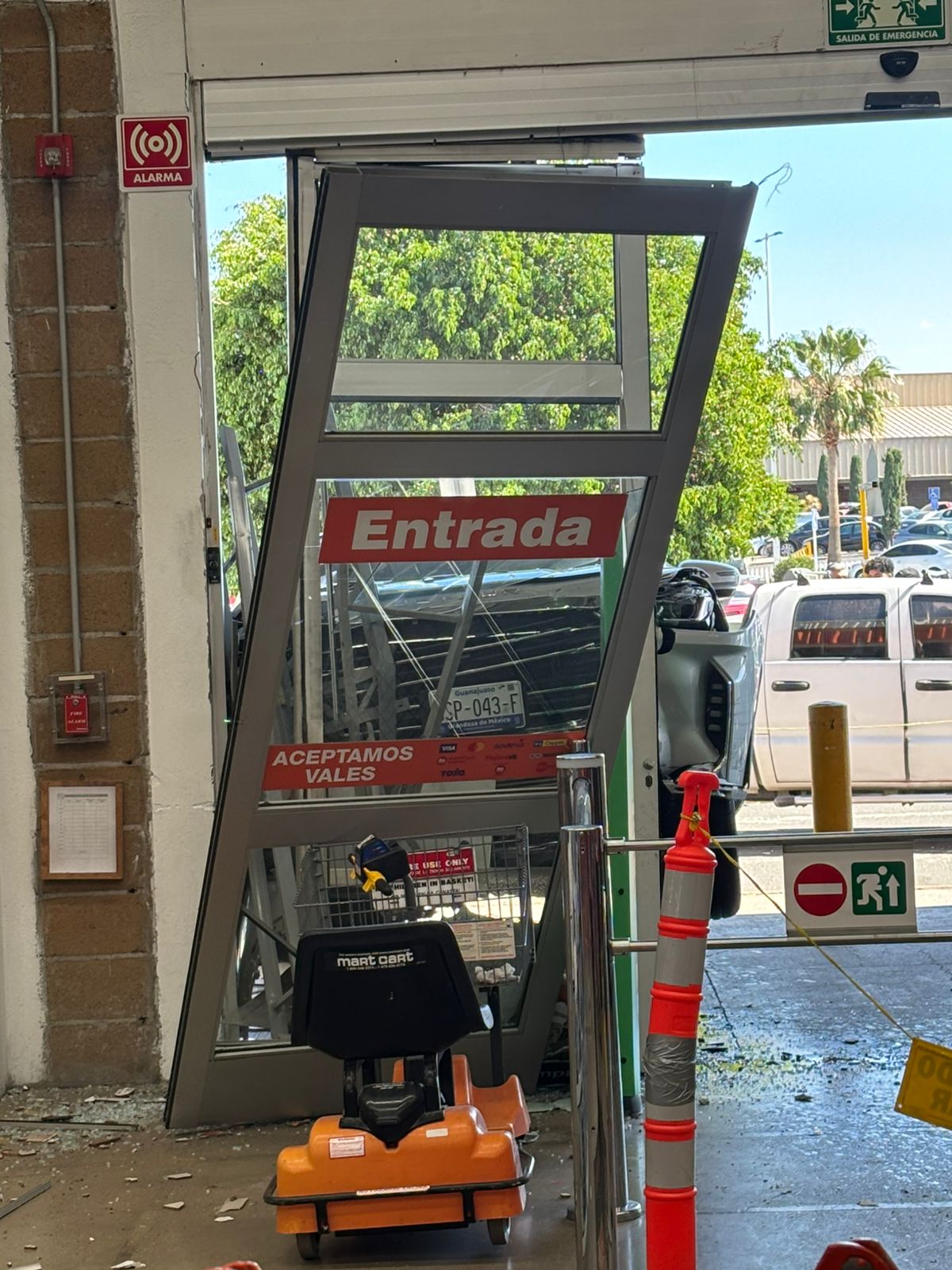 León. Gto 30 diciembre 2025.- Una mujer impactó su camioneta contra la entrada principal de la tienda Home Depot, ubicada en Centro Max, alrededor de la 1 de la tarde de este martes 30 de diciembre. El vehículo destruyó una de las puertas del acceso, lo que generó momentos de alarma entre clientes y empleados.