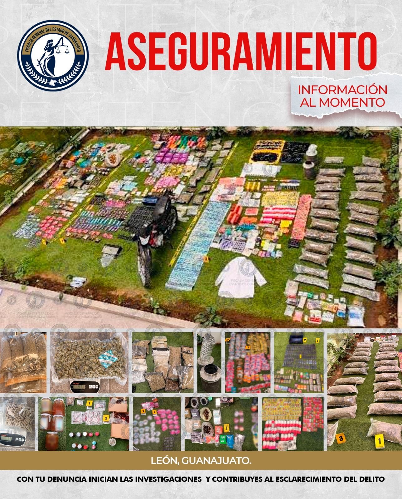 La Fiscalía General del Estado de Guanajuato ejecutó una orden de cateo en un inmueble de la colonia Brisas del Carmen, en León, donde desmanteló un laboratorio clandestino dedicado al procesamiento y comercialización de narcóticos.