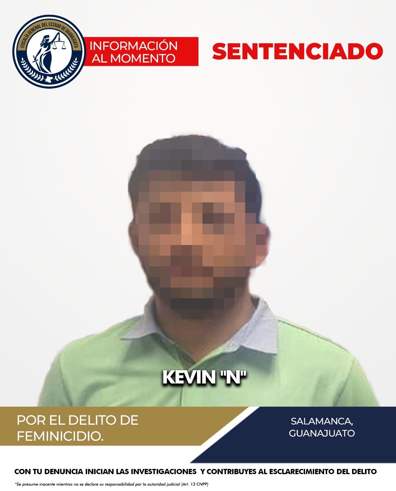 Salamanca, Gto.- La Fiscalía General del Estado de Guanajuato logró una sentencia condenatoria de 37 años de prisión contra Kevin “N”, encontrado culpable del delito de feminicidio cometido en marzo de 2024 en el municipio de Salamanca.