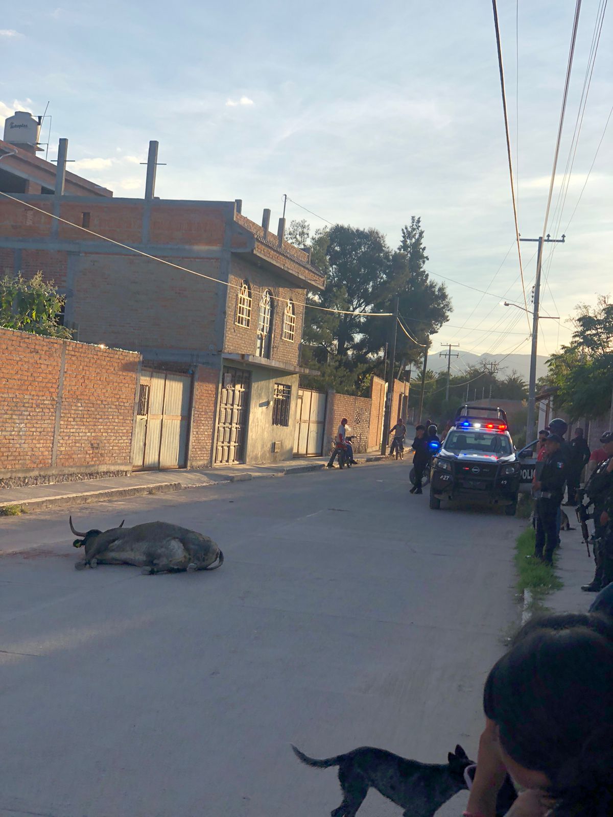 San Felipe, Gto.– Elementos de la Policía Municipal sacrificaron a un toro luego de que, junto con otros dos animales, escapara y embistiera varios vehículos, lo que ocasionó daños materiales.