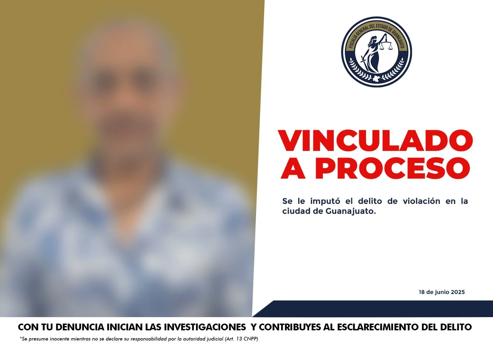 Guanajuato, Gto.— Luis Ernesto “N”, podólogo que atendía en un consultorio ubicado en la calle Alonso, en la zona centro de Guanajuato capital, fue vinculado a proceso penal por su presunta responsabilidad en el delito de violación, informó la Fiscalía General del Estado.